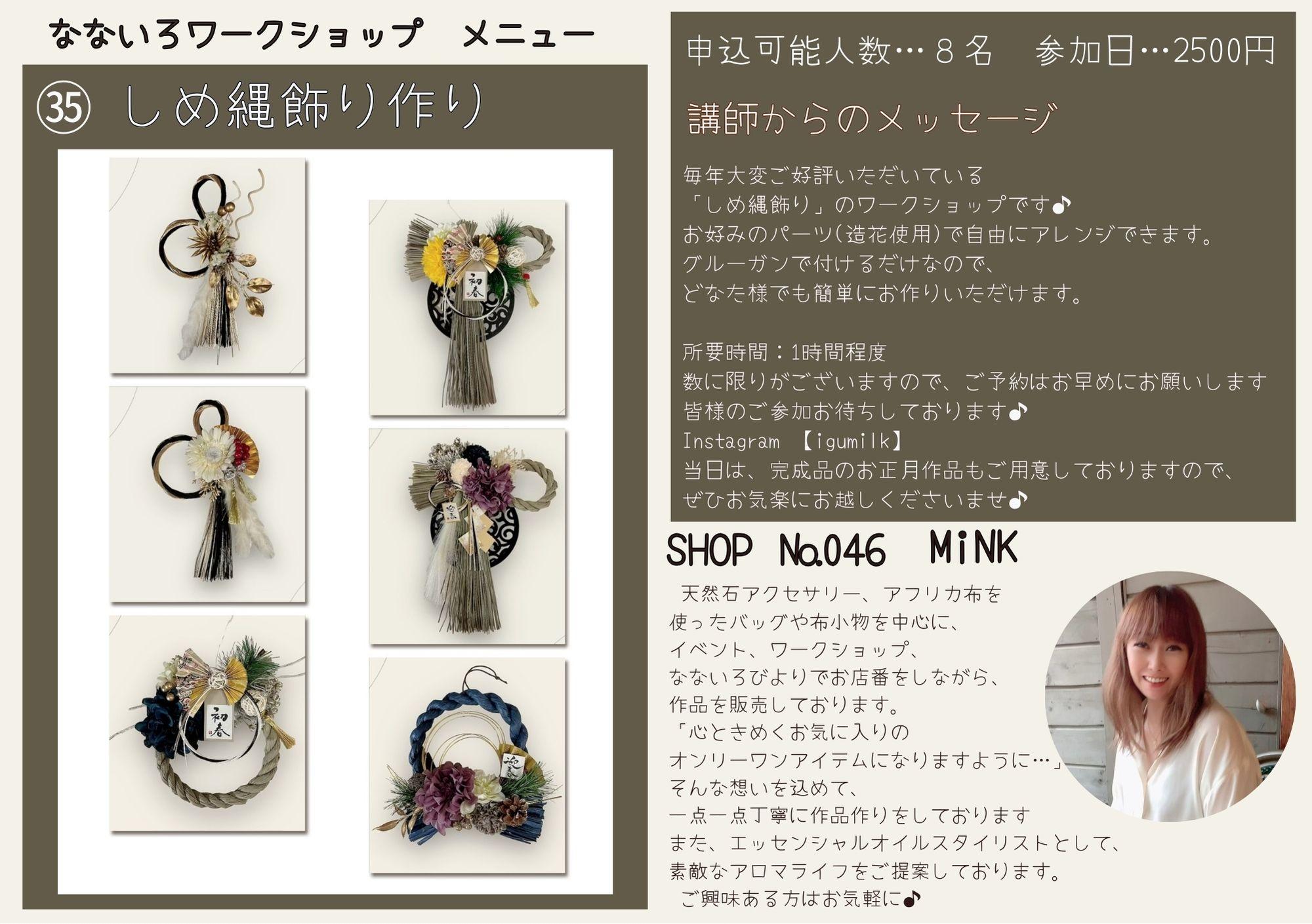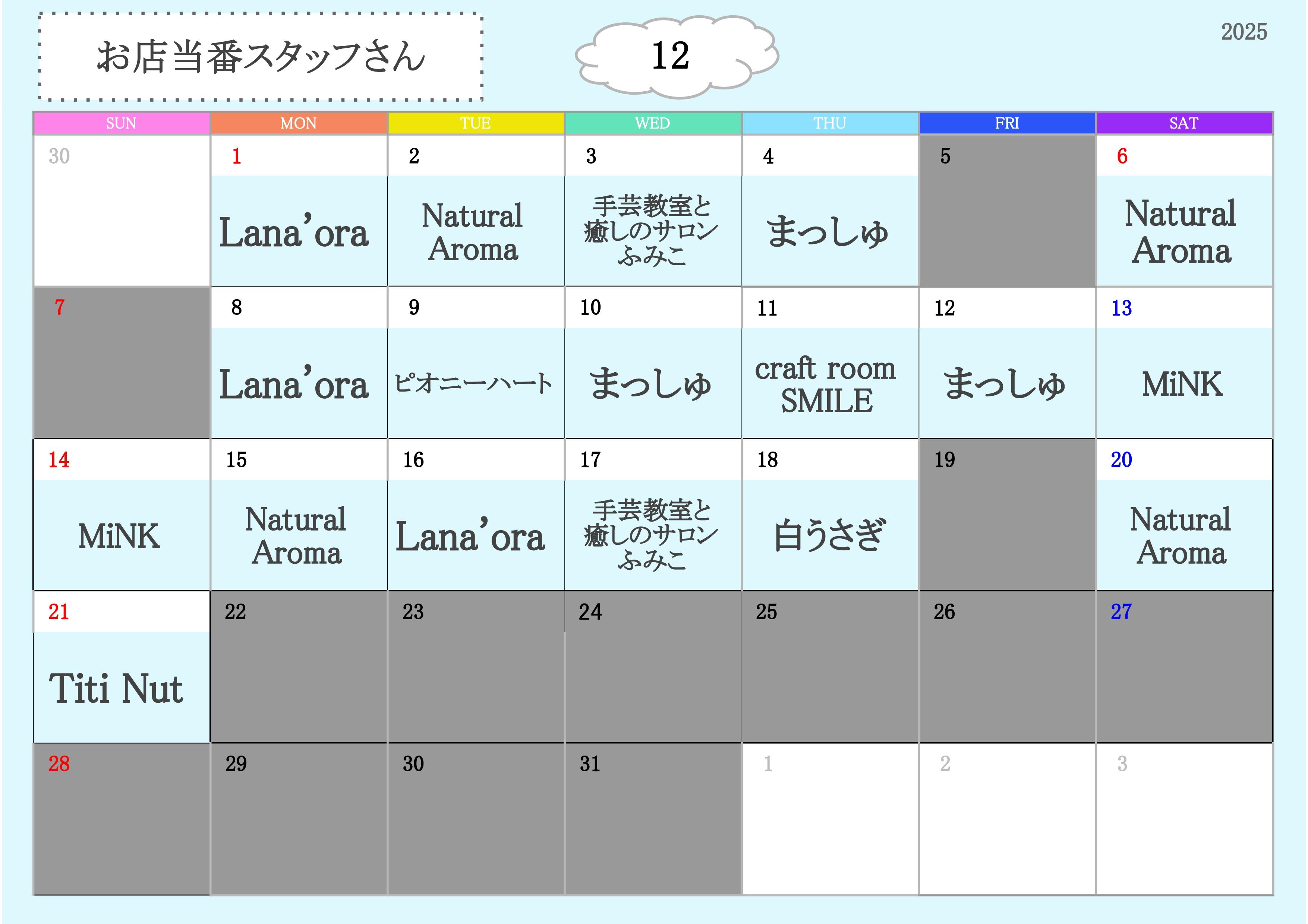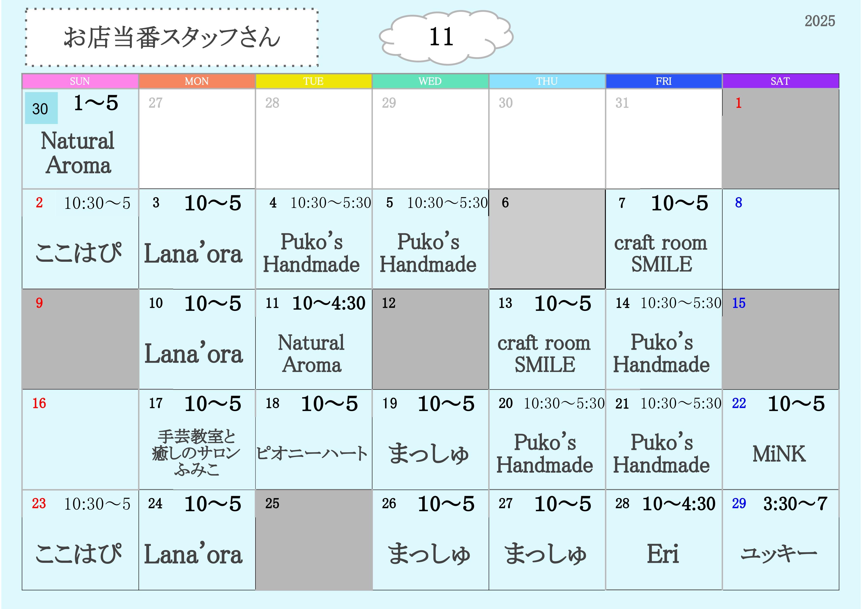 | 店名 | ハンドメイドショップ “なないろびより” |